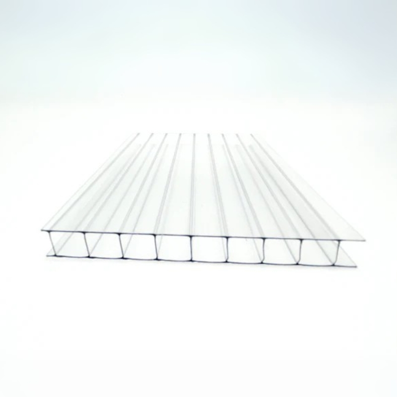 Hollow structure plate with polycarbonate as the main raw materials, using the most advanced production process, the surface distribution of high concentration UV co- extruded layer has the outstanding advantages of anti UV, light, light, easy installation, safe and reliable, low cost and high performance, is one of polycarbonate series plate most widely used in varieties.